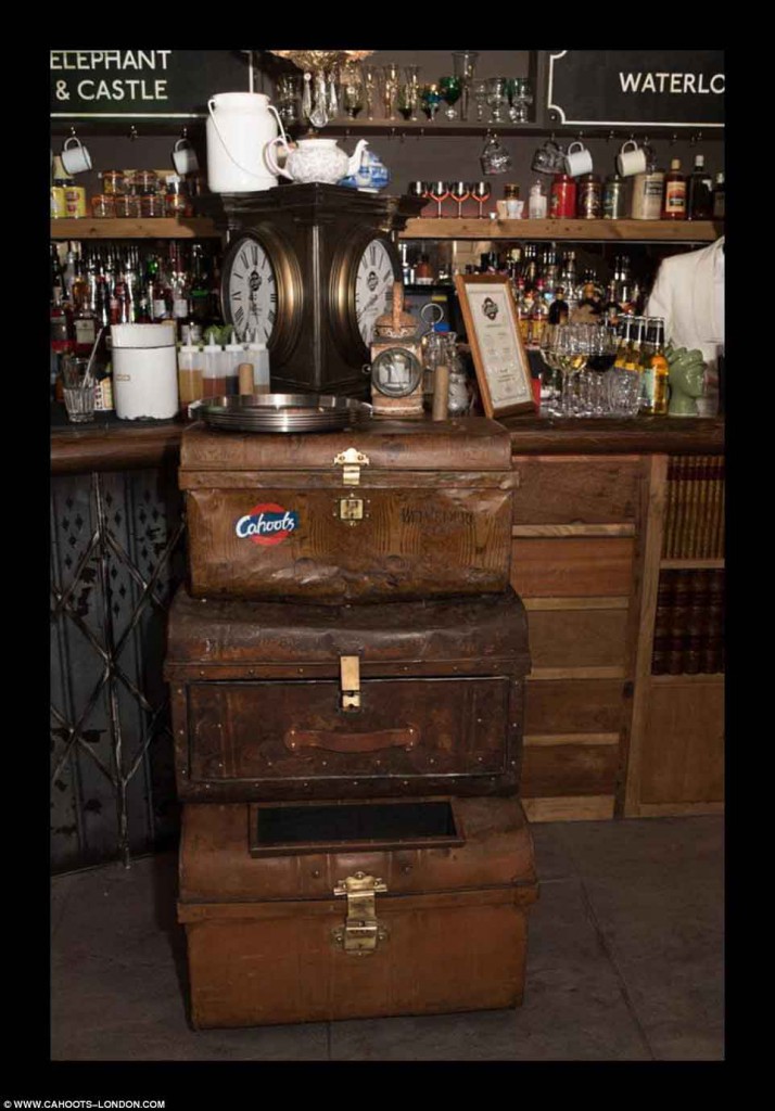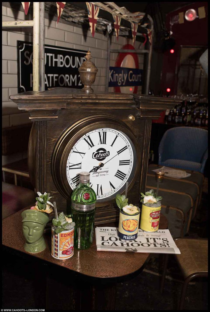 Am Bahnhof Cahoots wird klassisch zu fancy – Cocktails werden im Flachmann, in der Milchflasche, im Häferl, in Büchsen und riesigen Uhren serviert, unter den Zutaten finden sich Rote Rüben und Oxo-Suppenwürfel. Treppen inspiriert von den hölzernen Rolltreppen der 40er Jahre, eine winzige, abgetrennte Luftschutzbunker-Ecke mit schwach-romantischem Licht und antike Sitzplätze eines Waggon-Nachbaus perfektionieren das Flair.