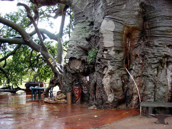 Die südafrikanische Bar „The Big Baobab“ auf der Sunland Farm in der Provinz Limpopo wird von den Wurzeln eines über 6.000 Jahre alten afrikanischen Affenbrotbaums getragen. Wenn diese Bäume ein Alter von 1.000 Jahren erreichen, beginnen sie von Innen heraus hohl zu werden – in diesem riesenhaften Exemplar wurde kurzerhand eine Bar installiert. Gönn‘ dir einen Drink im Baumstamm, wo du übrigens auch auch Dart spielen kannst.
