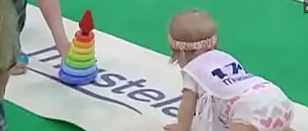 Maximal neun Monate sind die Säuglinge erst alt, da stecken sie schon in ihrem ersten Wettkampf. Das Wettkrabbeln in Moskau dauert immerhin zwei Minuten. Auf Seiten der „Trainer“ wird mit allen Tricks gearbeitet: Die Eltern bringen Spielzeuge, Smartphones und anderes Zubehör in’s Spiel damit die Kleinen bei der Sache bleiben. Aber seht selbst: