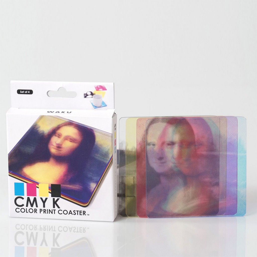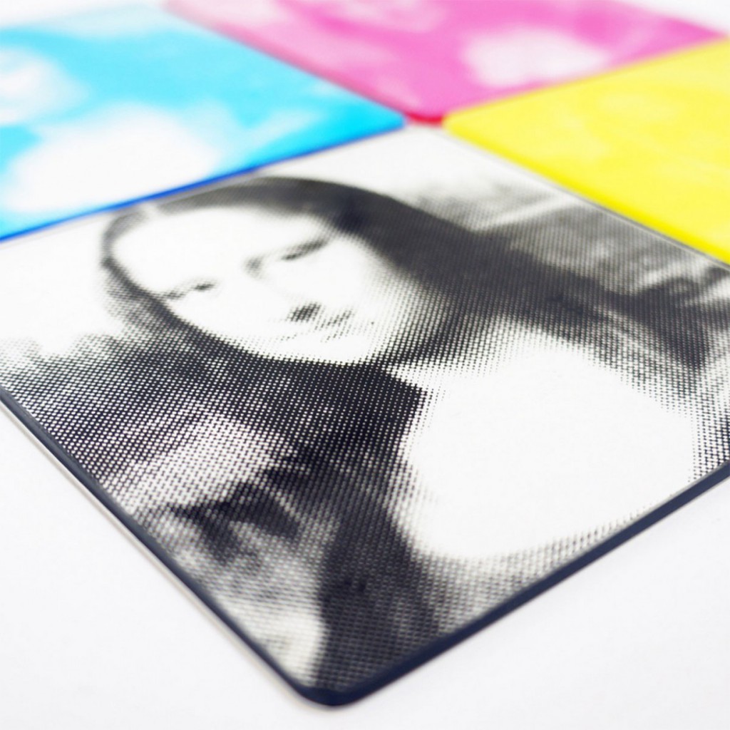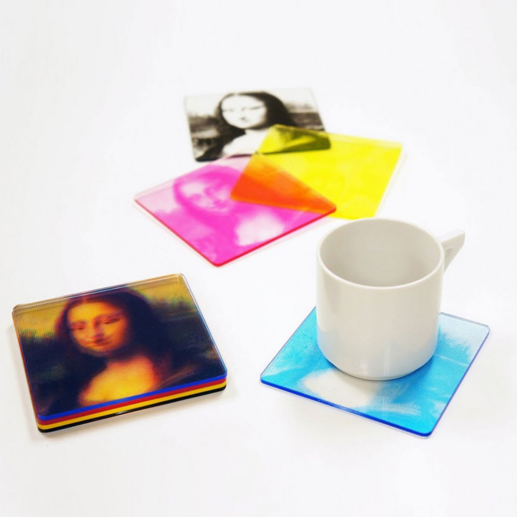 Wunderschöne Getränkeuntersetzer für Kunst-affine Menschen, die einen verblüffenden optischen Effekt bereit halten: Legt man die vier Untersetzer – jeweils einer in Cyan, Magenta, Yellow (Gelb) und Key (Schwarz) – übereinander, erscheint die Mona Lisa in voller Farbenpracht. Dahinter steckt keine Zauberei, sondern Farbenlehre, denn alle gebräuchlichen Druckfarben setzen sich aus diesen vier Grundfarben zusammen… Verwirrt? Keine Angst, man muss kein Grafiker sein um die Dinger stylish zu finden. Gibt’s für € 14,95 bei radbag.de.